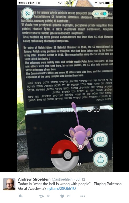 Również w Polsce miały miejsce podobne przypadki. Pokemony pojawiały się w byłym obozie Auschwitz i na Cmentarzu Powązkowskim. Oświęcimskie muzeum wystosowało więc prośbę do wszystkich, którzy chodzą z telefonami po terenie Auschwitz: Pozwalanie na aktywację tego typu gier w takich miejscach jak Auschwitz oznacza brak szacunku wobec ofiar na wielu poziomach – powiedział Paweł Sawicki, rzecznik prasowy muzeum. Liczymy na to, że twórcy Pokemon GO usuną grę z obozowej lokalizacji – dodał.